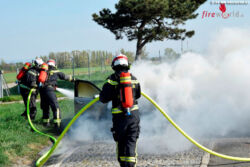 Bereits bei der Anfahrt konnte die ausgerückte Mannschaft die Rauchsäule des im Frontbereich in Vollbrand stehenden Cadillac erkennen. Um die Flammen zu bekämpfen, wurde unter Atemschutz eine C-Löschleitung vorgenommen. Die Wasserversorgung für die Brandbekämpfung wurde durch den Wassertank eines Hilfeleistungsfahrzeuges und des Großtanklöschfahrzeuges sichergestellt.