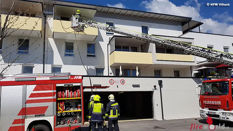 Unverzüglich wurde Alarmstufe 2 für die Hauptfeuerwache Villach und die Freiwillige Feuerwehr Vassach ausgelöst. "Beim Eintreffen unseres Löschzuges konnte bereits massiver Rauch aus den Fenstern wahrgenommen werden. Sofort drang ein Atemschutztrupp der Hauptfeuerwache mit Hilfe der Drehleiter über den Balkon in die Wohnung im 3. OG ein", berichtet die Feuerwehr Villach.