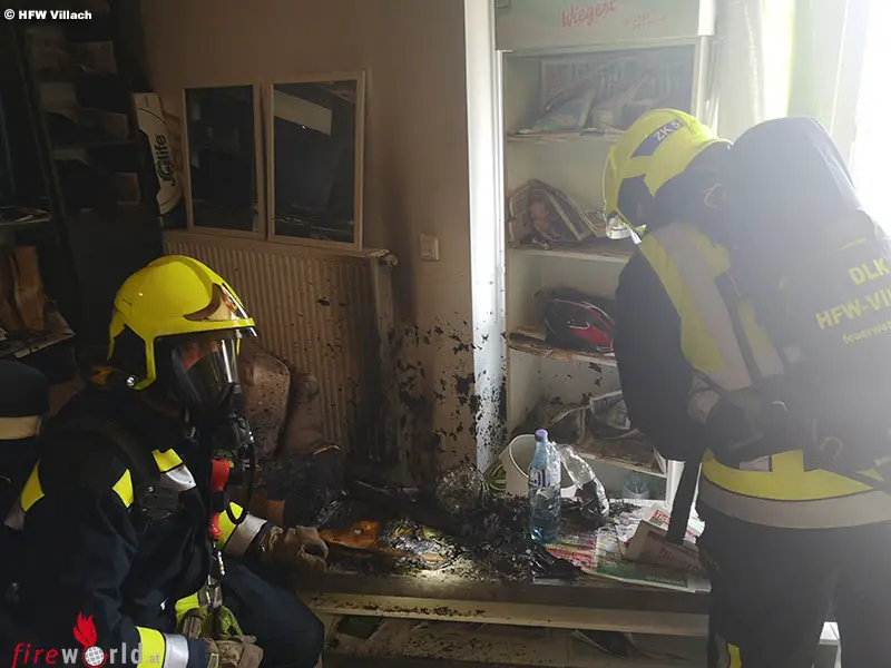 Unverzüglich wurde Alarmstufe 2 für die Hauptfeuerwache Villach und die Freiwillige Feuerwehr Vassach ausgelöst. "Beim Eintreffen unseres Löschzuges konnte bereits massiver Rauch aus den Fenstern wahrgenommen werden. Sofort drang ein Atemschutztrupp der Hauptfeuerwache mit Hilfe der Drehleiter über den Balkon in die Wohnung im 3. OG ein", berichtet die Feuerwehr Villach.
