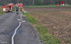 Die Wehr wurde um 18:55 Uhr von der Übungsleitung unter Kommandant Manfred Drexler und seinem Stellvertreter Robert Hammler – alarmiert. Nach der Erkundung von Einsatzleiter Brandinspektor Erwin Irzl wurden zum Aufbau einer Wasserversorgung und zur Brandbekämpfung weitere sieben Feuerwehren alarmiert. Ebenso wurden zwei Einsatzabschnitte gebildet. Innerhalb kürzester Zeit wurde eine 600 Meter lange Zubringerleitung zu den Tanklöschfahrzeugen aufgebaut und somit die Wasserversorgung sichergestellt.