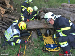 Auch ein technischer Einsatz musste von den Kameraden der FF Bad Radkersburg gelöst werden: eine Person rutschte von einem Holzstapel und wurde unter Baumstämmen begraben. Mittels Hebekissen konnte der Verletzte gerettet und den Feuerwehrsanitätern übergeben werden.