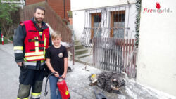 KREMS (OÖ): Am Mittwochnachmittag, dem 17. April 2019, wurde die Feuerwache Egelsee (FF Krems) zu einem Müllbehälterbrand in den Satzlweg alarmiert. Ehe die Feuerwehrkräfte am Einsatzort ankamen, eilten ein Mitglied der Feuerwehrjugend sowie ein benachbarter Kamerad zu Hilfe.