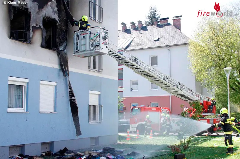 STEYR (OÖ): Um 13:30 Uhr des 19. April 2019 wurden die Löschzüge 2 (Steyrdorf) und 3 (Gleink) zu einem Wohnungsbrand in der Wachturmstraße alarmiert. Bereits beim Eintreffen der ersten Löschkräfte waren große Teile einer Wohnung in Flammen.