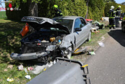 VORCHDORF (OÖ): Ein schwerer Verkehrsunfall hat sich Samstagmittag, 20. April 2019, auf der Eberstalzeller Straße in Vorchdorf (Bezirk Gmunden) ereignet. Vier Personen wurden teils schwer verletzt.