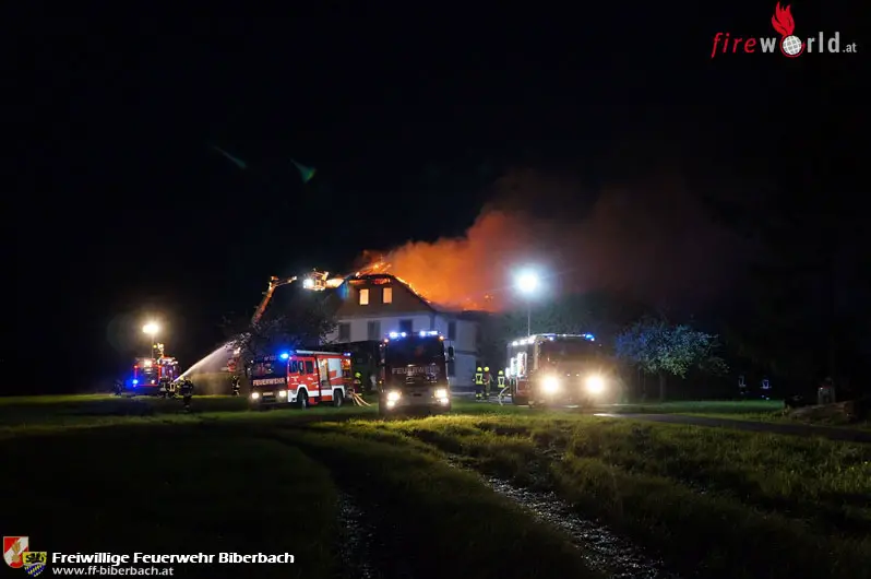 Nö: Acht Feuerwehren bekämpfen Dachstuhlbrand in Biberbach