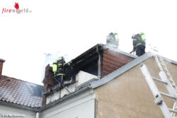 Die Dachhaut aus Blech und Holz wurde durch eine Rettungssäge geöffnet, um den Brand auch mit einem Strahlrohr bekämpfen zu können. Kurze Zeit später wurde der Dachausbau wegen geräumt, weil die Dauchkonsturktion rund um den Kamin durch den Brand und die Öffnungen zu instabil wurde. Die weitere Brandbekämpfung konnte von Innen weitergeführt werden. Kurz darauf konnte "Brand aus" gegeben werden