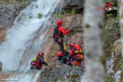 SCHÖNAU AM KÖNIGSSEE – Am Dienstagabend sind zwei 21-jährige Männer aus Sachsen beim Baden am Königsbach-Wasserfall auf der steilen Ostseite des Königssees ums Leben gekommen. Die Beiden waren in einen Gumpen nur wenige Höhenmeter über dem See gegangen und hatten möglicherweise das aktuell viele Schmelzwasser unterschätzt, weshalb sie vermutlich aufgrund des hohen Sauerstoff-Anteils und des starken Wasserdrucks das Becken nicht mehr verlassen konnten. Einsatzkräfte von Bergwacht, Wasserwacht, Feuerwehr und Polizei konnten die jungen Männer in einem schwierigen Einsatz trotz aller Bemühungen nur noch tot bergen.