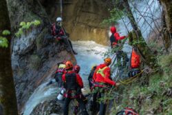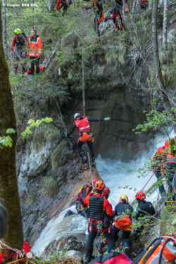 Als gegen 18.15 Uhr der Notruf einging, schickten die Leitstelle Traunstein und die Polizei-Einsatzzentrale Rosenheim sofort ein Großaufgebot an Rettern los, darunter die Bergwacht und die Wasserwacht Berchtesgaden, die Wasserwacht Bad Reichenhall, die gemeinsame Canyon-Rettungsgruppe von Berg- und Wasserwacht, den Traunsteiner Rettungshubschrauber „Christoph 14“, den Polizeihubschrauber „Edelweiß 2“, den Landrettungsdienst des Roten Kreuzes mit Rettungswagen, Notärztin und Einsatzleiter, die Freiwilligen Feuerwehren Königssee, Berchtesgaden und Bad Reichenhall mit der Tauchergruppe und mehrere Polizeibeamte zur Unfallaufnahme.