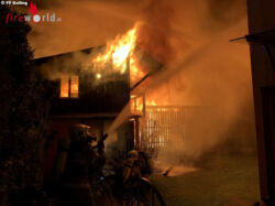 Sbg: Großbrand in Golling, Alarmstufe 3 → Werkstatt und Schuppen in Vollbrand, Gasflaschen im Gebäude
