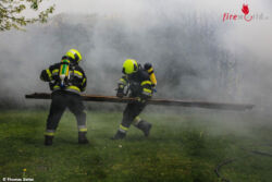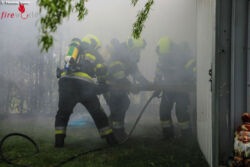 Schon während der Fahrt an den Einsatzort rüsteten sich zwei Atemschutztrupps aus um sofort nach dem Eintreffen am Einsatzort mit dem Löscharbeiten beginnen zu können, schildert Einsatzleiter Oberbrandinspektor Christian Illmaier von der Feuerwehr Knittelfeld. Während der sich rasch ausbreitende Brand des Thujenzaunes mittels Hochdruckrohren binnen weniger Minuten eingedämmt werden konnte, kämpften sich die beiden Atemschutztrupps ins das Innere der Doppelgarage vor.