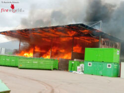 Die ersten Kräfte versuchten über mehrere Leitungen ein Übergreifen der Flammen auf weitere in unmittelbarer Nähe abgestellte Wc- und Büro-Containern sowie Container mit unterschiedlichen Müllarten zu verhindern.