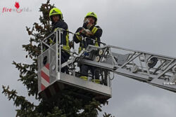 Am Einsatzort wurde die Retzer Kollegen vom dortigen Einsatzleiter über die Lage informiert und brachten die Drehleiter in Stellung. Bereits nach wenigen Minuten konnte das Tier mittels Drehleiter geborgen und unverletzt an die Besitzer übergeben werden.