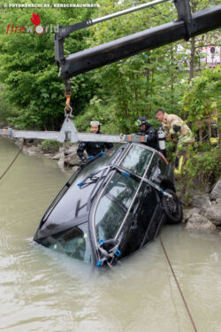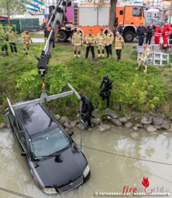 LINZ (OÖ): Die Linzer Berufsfeuerwehr mussten am 29. April 2019 zu einem Bergungseinsatz auf das Urfahranermarktgelände ausrücken: Ein Pkw war aus der Donau zu heben.