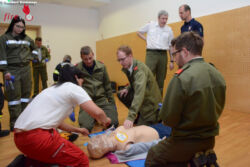 Einen interessanten Vortrag gestalteten Bezirks-Feuerwehrarzt BFA Dr. Christian Wiesinger mit Unterstützung vom Roten Kreuz Eva Rammerstorfer und Arbeiter Samariterbund Dominik Angerer über Frühdefibrillation und Reanimation in der Praxis.