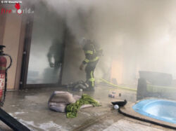 Beim Eintreffen des ersten Fahrzeuges wurde sofort ein Außen- sowie ein Innenangriff vorgenommen. Somit konnte der Brand nach kurzer Zeit abgelöscht werden. Die Dame wurde bei dem Brand verletzt und nach notärztlicher erstversorgt in ein Spital eingeliefert. Die FF Sollenau wurde von der Einsatzleitung zum befüllen der Atemschutzflaschen mit dem WLF – Atemluft nachalarmiert.