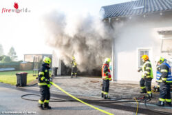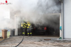 KIRCHBERG-THENING (OÖ): Gegen 7.00 Uhr des 1. Mai 2019 wurden die Feuerwehren Axberg, Freiling und Kirchberg-Thening zu einem Wohnhausbrand alamiert. Die Lageerkundung, die unter schwerem Atemschutz durchgeführt wurde, ergab eine stark verrauchte Garage eines Einfamilienhauses in Thening.