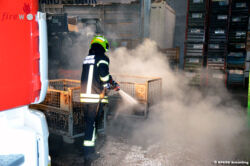 Unverzüglich wurde auch die Gaszufuhr des Ofens abgesperrt. In weiterer Folge wurden auch Palettenkisten, deren Inhalt zu brennen begonnen hatte, mittels Stapler vom Betriebspersonal aus der Halle gefahren und dort abgelöscht. Laufend wurde der abgelöschte Bereich mittels Wärmebildkamera kontrolliert.