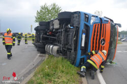 SUBEN (OÖ): „Verkehrsunfall mit eingeklemmter Person – LKW umgestürzt“ lautete die Alarmierung für die Feuerwehren St. Marienkirchen bei Schärding, Suben und Hub am Freitag, 3. Mai 2019, um 15:25 Uhr. Ein Tankwagen befüllt mit Glucose ist beim Kreisverkehr bei der Abfahrt von der Autobahn (A8) in St. Marienkirchen bei Schärding ohne Beteiligung eines weiteren Fahrzeugs umgestürzt und kam seitlich zum Liegen.