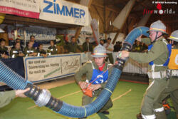 Beim Kuppelbewerb müssen fünf Feuerwehrleute, unter genauen Vorgaben, eine Saugleitung zusammensetzen und fehlerfrei an eine Pumpe anschließen. Der Vorgang wird von zwei Bewertern des Bezirks-Feuerwehrkommandos genau bewertet, die Zeit wird elektronisch gemessen.