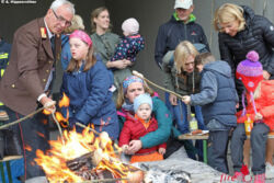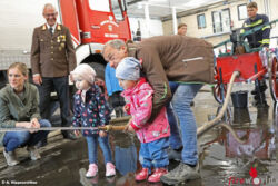 Mal einen Nachmittag „Feuerwehrluft schnuppern“ und spielerisch all das ausprobieren, was die großen Vorbilder bei der Feuerwehr so machen. Das Hissen der Fahne eröffnete das Programm, das die Kinderaugen u.a. mit Hubsteigerfahrten, einer Ausfahrt mit dem Feuerwehrauto oder dem Löschen mit Feuerwehrschlauch und Feuerlöscher zum Strahlen brachte. Bastelbögen und Spiele oder mal in Papa´s Einsatz-Uniform schlüpfen – all das konnten die Kleinsten mal probieren. Und weil die Feuerwehrarbeit hungrig macht, durften die Zwerge ihr Würstel selber an der Feuerstelle grillen.