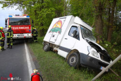 EDT BEI LAMBACH (OÖ): Der Lenker eines kleinen Kühltransporters hat Montagabend, 6. Mai 2019, die Kontrolle über sein Fahrzeug verloren, kam von der Fahrbahn ab und krachte im Gemeindegebiet von Edt bei Lambach (Bezirk Wels-Land) gegen einen Baum.