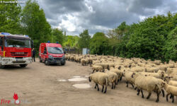 BOCHUM (DEUTSCHLAND): Ein Schaf auf Abwegen führte am 9. Mai 2019 zu einem Feuerwehreinsatz in Querenburg. Was war passiert: Am Mittag graste eine Schafherde im Bereich des Sportplatzes am Hustadtring. Als die Herde gegen 12.45 Uhr weiterzog, verfing sich eins der Schafe in einem Dornengebüsch auf einer Wiese hinter dem Sportplatz.