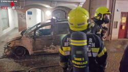 Direkt vor der Polizeiinspektion Hauptplatz hatte ein Streifenwagen aus noch unbekannter Ursache zu brennen begonnen. Als die Hauptfeuerwache eintraf, wurde unter schweren Atemschutz eine Löschleitung vorgenommen und der bereits in Vollbrand stehende Pkw abgelöscht. Ein weiteres Ausbreiten auf das Gebäude konnte verhindert werden, so Einsatzleiter HBI Harald Geissler von der Hauptfeuerwache. Trotzdem wurden Fassadenteile in Mitleidenschaft gezogen.