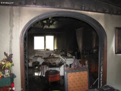 Währenddessen begannen die bereits vor Ort befindlichen Kameraden unter schwerem Atemschutz mit der Suche nach der vermissten Person. Leider konnten die Bewohnerin und ihr Kater nur noch Tod geborgen werden. Der Brand wurde danach mittels C-Rohr schnell gelöscht und es wurde eine Entrauchung der Räumlichkeiten mittels Überdruckbelüfter durchgeführt. Die Brandursache ist Gegenstand polizeilicher Ermittlungen. Nach einer Stunde Einsatzzeit konnten die 20 Kameraden wieder ins Feuerwehrhaus einrücken.