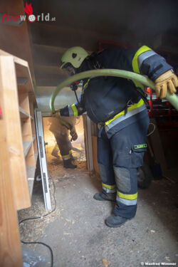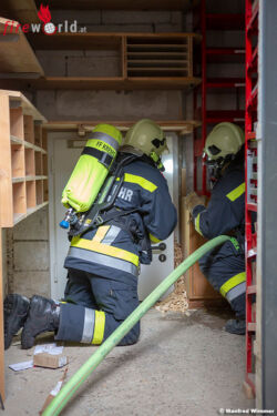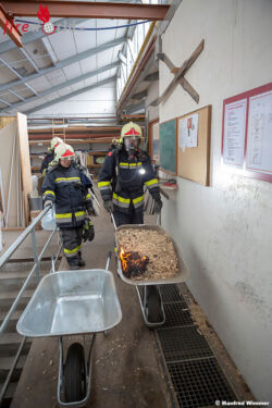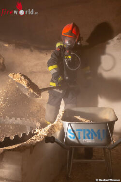 An der Einsatzstelle wurde festgestellt, dass der Silo mit etwa 30 m³ Hackschnitzel befüllt war und diese an der Oberfläche in Vollbrand standen. Da die Ausbreitungsgefahr gering war, wurde entschieden, den Inhalt brennen zu lassen und den Silo händisch, geschützt mit Atemschutzgeräten, auszuräumen.