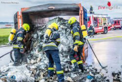Da kein entsprechendes Hakenliftgerät zur Verfügung stand, wurde das Kranfahrzeug der Feuerwehr Alkoven beigezogen, um den Container anzuheben und das darin enthaltene Plastik zu entleeren. Es wurde zerteilt und dann unter Zusatz von Schaum als Netzmittel abgelöscht. Um 07.30 Uhr war der Einsatz beendet.