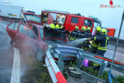 Ein Autolenker, der auf der Westautobahn in Fahrtrichtung Salzburg unterwegs war, krachte bei der Autobahnabfahrt Traun gegen den Spitz der Leitschiene. Das Auto begann unmittelbar nach dem Anprall zu brennen.