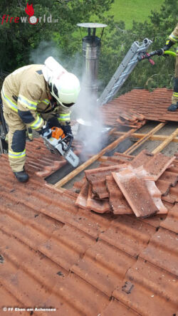 EBEN AM ACHENSEE (TIROL): Zu einem gemeldeten Küchenbrand wurde die FF Eben am Achensee am Abend des 16. Mai 2019 mittels Pager alarmiert. Vor Ort stellte sich heraus, dass sich ein Brand im Küchenbereich sowie im angrenzenden Dachboden mit sichtbar offener Flammenbildung entwickelt hat.
