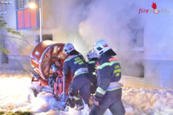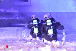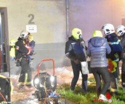 Während der Löscharbeiten kam es im Keller zu mehreren Verpuffungen, der Brand breitete sich rasant auf den gesamten Keller der betroffenen Stiege aus, begleitet von einer enormen Hitze- und Rauchentwicklung. Von außen wurde eine Ausbreitung des Brandes auf andere Gebäudeteile mit mehreren Löschleitungen unter Atemschutz verhindert, der Keller wurde über zwei Löschleitungen unter Atemschutz mit Löschschaum geflutet. Gegen 4:00 Uhr konnte Brand aus gemeldet werden. Während der Lösch- und Evakuierungsarbeiten wurde