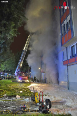 mit mehreren Hochleistungslüftern der Brandrauch aus den Kellern, den Stiegenhäusern und der Garage gedrückt. Durch den Brand wurden mehr als 70 Kellerabteile komplett zerstört, die Aufräumarbeiten dauerten noch bis 6 Uhr morgens an.