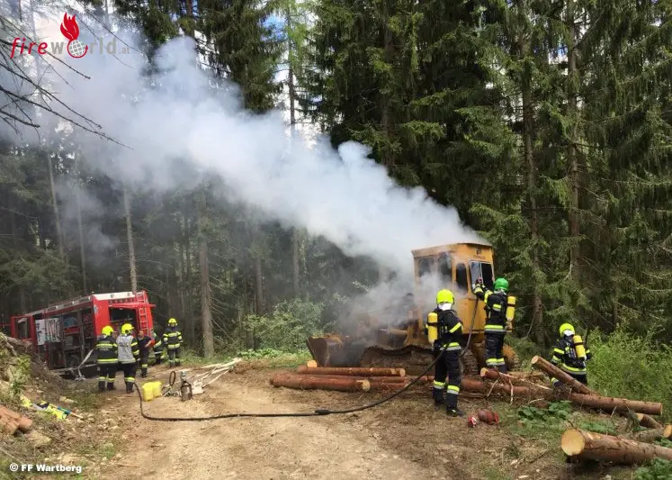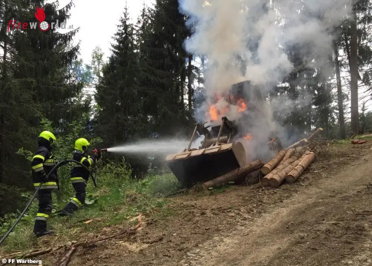 WARTBERG (STMK): Am Freitag, 17. Mai 2019, wurde die Feuerwehr Wartberg um 13.20 Uhr zum Brand einer Baumaschine am Aichberg gerufen. Vermutlich durch einen technischen Defekt kam es zu einem Brand an der Maschine.