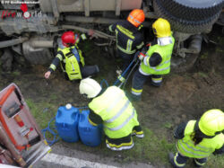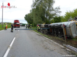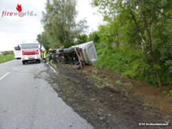 Durch einen technischen Defekt kam auf der LB4 eine Lenkerin mit ihrem Fahrzeug von der Fahrbahn ab und stürzte mit dem Sattelaufleger in den Straßengraben. Die Fahrerin konnte selbst via Feuerwehrnotruf 122 die Einsatzkräfte verständigen. Zur gleichen Zeit wurde auch ein Lkw-Unfall mit eingeklemmter Person, ebenfalls auf der LB4, jedoch im Bereich Ziersdorf, in der Alarmzentrale gemeldet. Es stellte sich heraus, dass es sich bei beiden Meldungen um den gleichen Einsatz handelte und die Fahrerin nicht im eingeklemmt war.