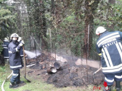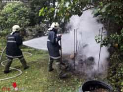 Ein Komposthaufen und Sträucher standen in Brand. Die Feuerwehr rückte mit 12 Mann zum Einsatzort aus und konnte nach kurzer Zeit wieder die Einsatzbereitschaft herstellen.