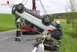 Der Unfall ereignete sich auf der Salzkammergutstraße im Gemeindegebiet von Regau. Aus bisher unbekannter Ursache kollidierten zwei PKW nahezu frontal. Eine Auto wurde über die Böschung in ein kleines Rinnsal geschleudert, wo es auf dem Dach zum Liegen kam. Die Lenkerin konnte sich glücklicherweise selbst aus dem Unfallwrack befreien. Das zweite Unfallwrack kam auf der Straße zum Stillstand, aus diesem Fahrzeug musste die Feuerwehr eine Person mittels hydraulischem Rettungsgerät befreien. Beide Verletzten wurden nach notärztlicher Erstversorgung ins Krankenhaus eingeliefert. Die Feuerwehr sicherte zudem die Unfallstelle ab, band ausgelaufene Betriebsmittel und führte anschließend die Aufräumarbeiten durch.