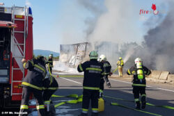 Der Lenker wurde durch die Wucht des Aufpralles ca 10 Meter aus dem Führerhaus geschleudert. Das Führerhaus fing sofort Feuer. Der Brand breitete sich sehr rasch auf die Ladung aus. Die geladenen Haushaltschemikalien stellte die anrückende Feuerwehr vor Herausforderungen, da es sich trotz sofortiger umfassender Löschmaßnahmen immer wieder neu entzündete. Der Lenker wurde vor Ort von zwei Notärzten versorgt und anschließend mit dem Hubschrauber in ein Wiener Krankenhaus geflogen. Der Einsatz dauert zur Stunde noch an.