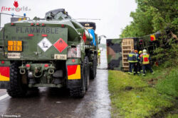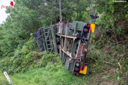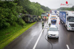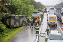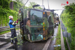 GIESSHÜBL (NÖ): Einen spektakulären Einsatz galt es am 29.05.2019 durch die Kranmannschaft der Feuerwehr Mödling zu bewältigen. Ein Militärkonvoi der US Army bestehend aus drei Fahrzeugen befand sich auf der Durchreise zu einer NATO Übung durch Österreich, als eines der Fahrzeuge von der Autobahn A21 abkam und auf einer angrenzenden Böschung umkippte.