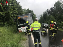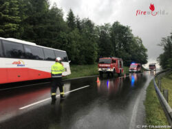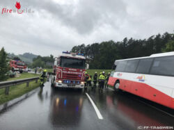 TRAGWEIN (OÖ): Die Feuerwehr Tragwein und Mistlberg wurden am 29. Mai 2019 zu einem Verkehrsunfall auf der B124 Richtung Pregarten Höhe Fa. Haunschmidt alarmiert. Ein Linienbus kollidierte beinahe mit einem Lkw.