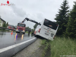 Mit der Seilwinde des LFB-A und LAST Tragwein konnte der Bus schließlich sicher und sorgsam geborgen werden und seine Fahrt fortsetzen. Während des gesamten Einsatzes war die B124 gesperrt und eine Umleitung eingerichtet.