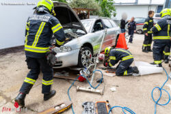 In einem Firmengebäude war ein Mann ersten Informationen zufolge damit beschäftigt, Arbeiten an einem Auto vorzunehmen, welches sich auf einer kleinen Hebebühne befand. Aus bisher unbekannten Gründen wurde der Mann dabei unter dem Fahrzeug eingeklemmt. Anwohner hörten den Mann Hilferufe des Mannes und eilten ihm zu Hilfe. Die Feuerwehr wurde zur Personenrettung alarmiert, beim Eintreffen der Einsatzkräfte war der Mann aber bereits von Passanten befreit worden. Der Verletzte wurde nach der Erstversorgung durch den Rettungsdienst mit dem Notarzthubschrauber Christophorus 10 ins Krankenhaus geflogen.