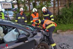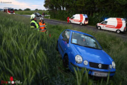 WELS (OÖ): Ein Verkehrsunfall zwischen zwei beteiligten Fahrzeugen hat sich Freitagabend, 31. Mai 2019, in Wels-Puchberg ereignet. Eines der Unfallfahrzeuge landete in einem angrenzenden Feld.