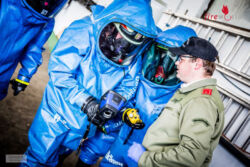 - Station 2: Der Umgang mit den Gaswarngeräten und Prüfröhrchen wurde theoretisch sowie praktisch unter Einsatz des Vollschutzanzuges und der Wärmebildkamera erprobt.