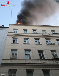 WIEN, 8. BEZIRK: Gegen 5 Uhr morgens kam es am 3. Juni 2019 in einer Wohnung in Wien-Josefstadt zu einem Brand, der sich auf das Dach auszubreiten drohte. Beim Eintreffen der Berufsfeuerwehr Wien schlugen bereits Flammen aus den Fenstern der Dachgeschoßwohnung.