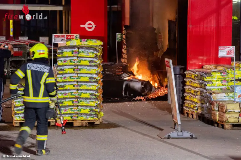 Oö: Feuerwehreinsatz nach Bankomatsprengung in Vorchdorf & vermutl. brennendes Fluchtauto
