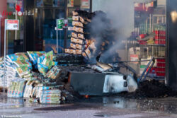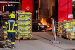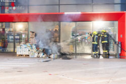 Nach der Sprengung ist es offenbar zu einem Brand gekommen beziehungsweise wurde dieser herbeigeführt. Die Feuerwehr stand bei einem „Brandeinsatz klein“ im Einsatz.