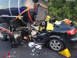 Nö: Pkw schiebt sich rund 1,8 m unter Sattelauflieger → Lenker eingeklemmt