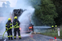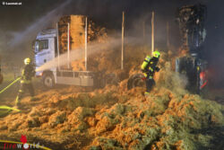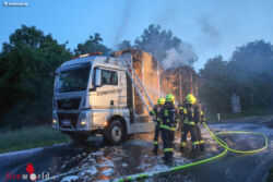 Oö: Strohladung brennt auf Lkw in Schleißheim → fünf Feuerwehren alarmiert